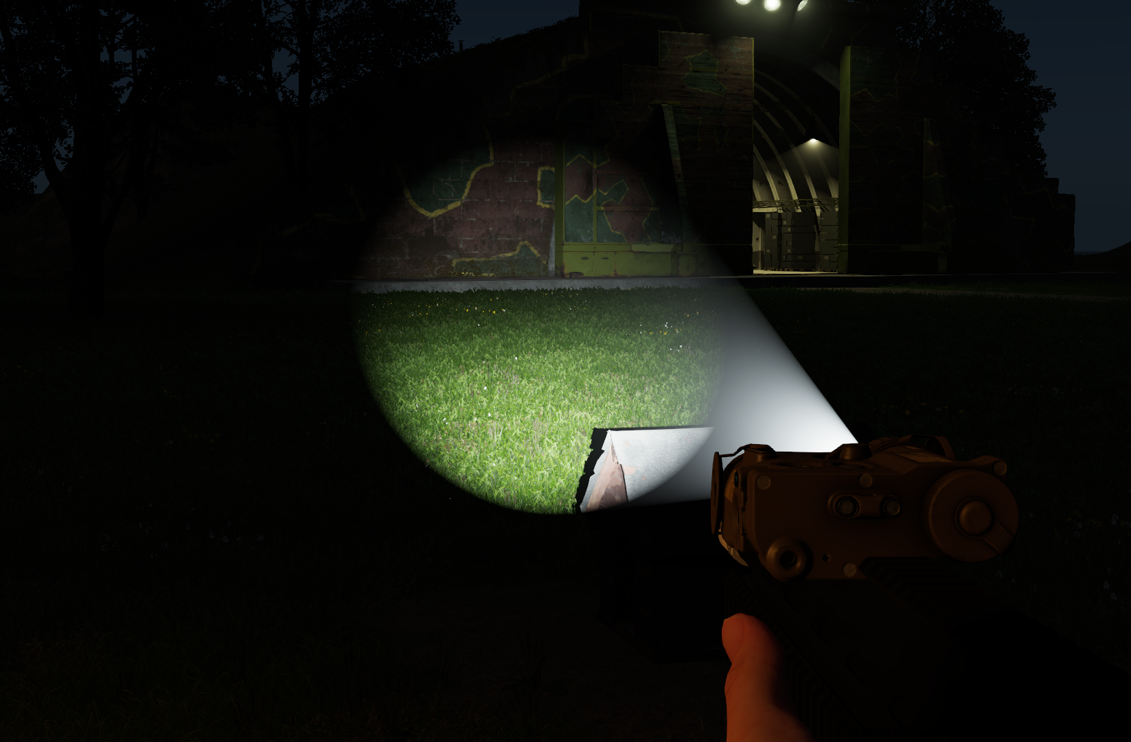 Due to some limitations action that allows user to adjust illuminator cone angle is only available through traditional inspect action (or while device is on the ground) which users can get to by pressing \[**Ctrl**] + \[**R**]. From there user has to select that option by using \[Scroll]. In order to adjust the angle user has to hold \[**F**] and \[**Scroll**] just like it is in case of BTR viewport hatches.